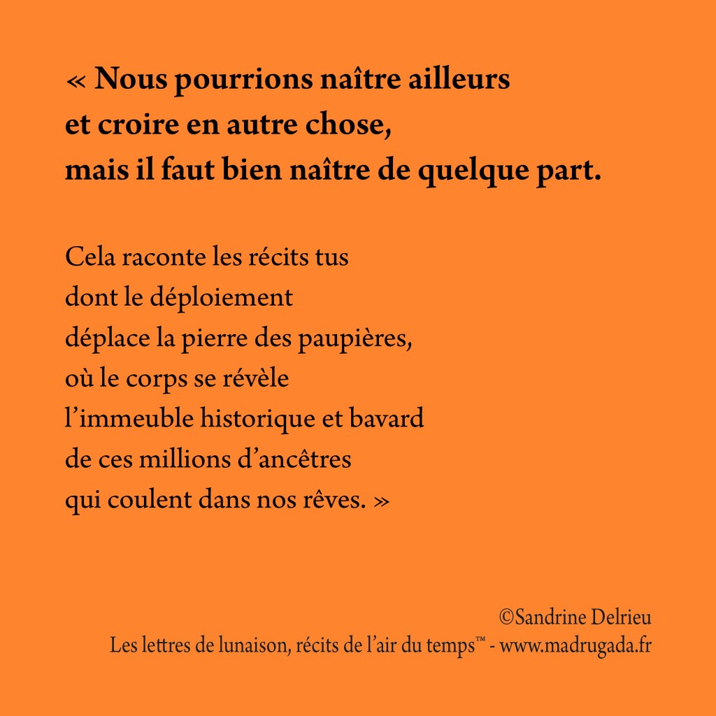 de ces millions d’ancêtres qui coulent dans nos rêves. »