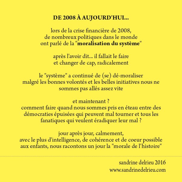 Lors de la crise financière de 2008,de nombreux politiques dans le mondeont parlé de la "moralisation du système". Après l'avoir dit... il fallait le faireet changer de cap, radicalement. Le "système" a continué de (se) dé-moraliser,malgré les bonnes volontés et les belles initiatives nous ne sommes pas allés assez vite. Et maintenant ?Comment faire quand... Lire la Suite →